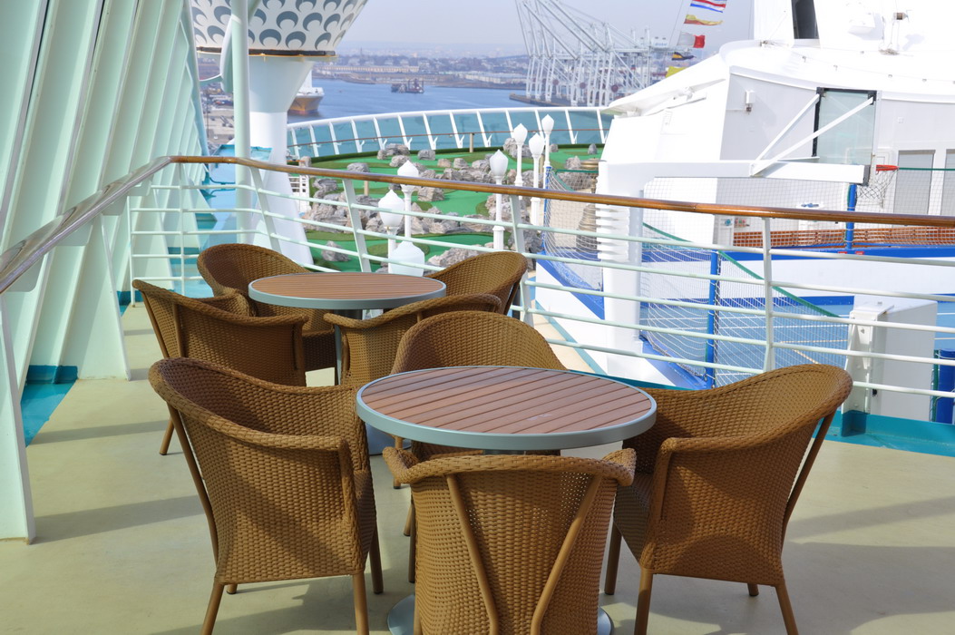 For inside entertainment, Explorer of the Seas has a big theater with Broadway-style productions every night, as well as a nice-sized skating rink where you can skate around during the day or watch ice dancing shows at night. If you’re here for businesses, you can also use some of the conference rooms. And if you’re into healthy lifestyles, there’s a big gym with all kinds of weight machines, spin bikes, treadmills and so on. Above it it’s a full-service spa.