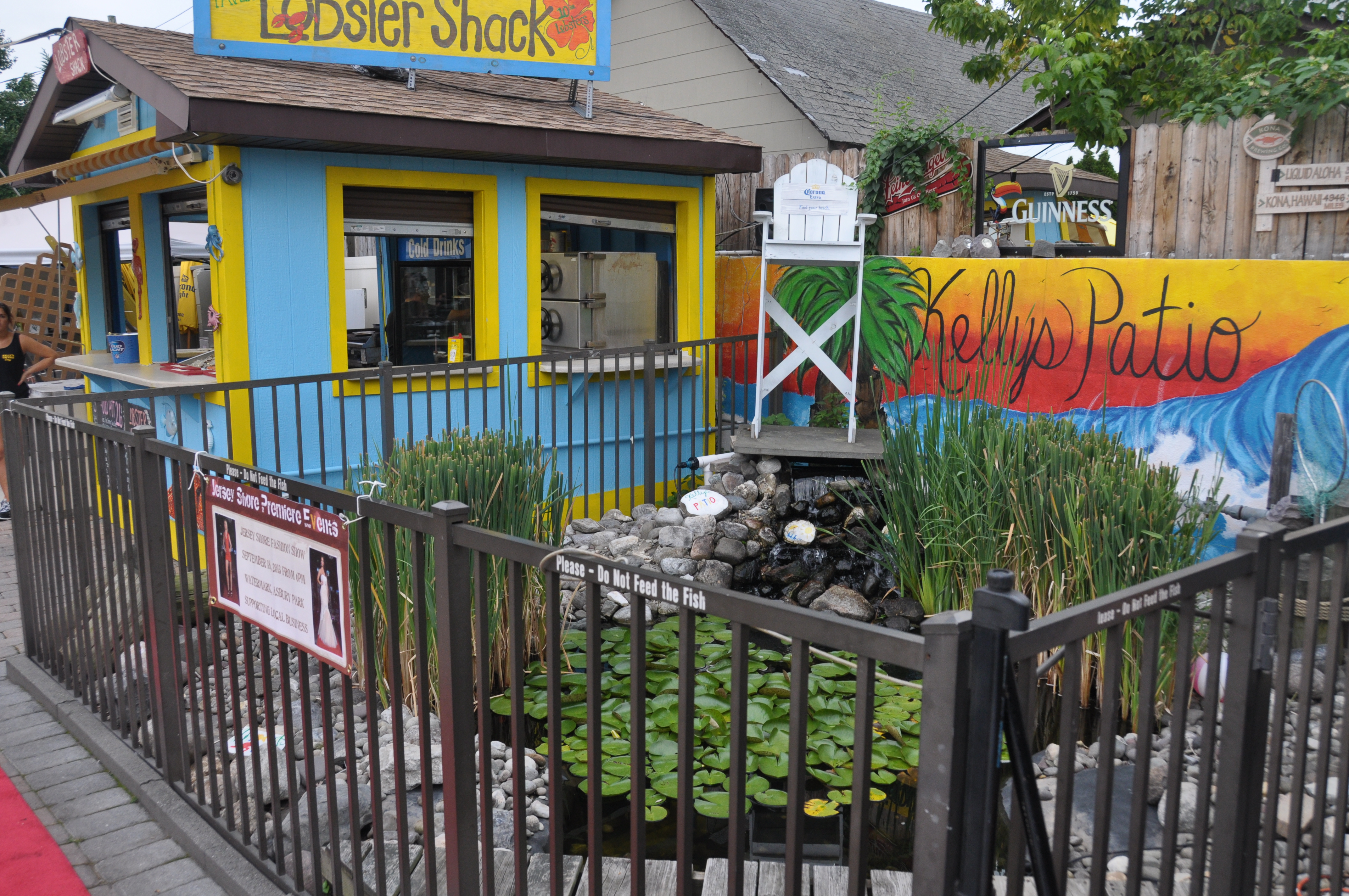 Hidden behind a big fence on Route 35 South in Neptune (just before the bridge to Belmar) is a very cool bar and restaurant that bennies didn’t seem to find yet, so it can easily be enjoyed by locals who want to have some relaxing time and good food: Kelly’s Tavern. We’ve been there only during the summer, when the big outdoor patio is the place to be! There’s a big covered bar, and plenty of tables under the shade of umbrellas. On one side, a small Japanese garden with a waterfall provides some nice scenery, next to the “Lobster Shack”.